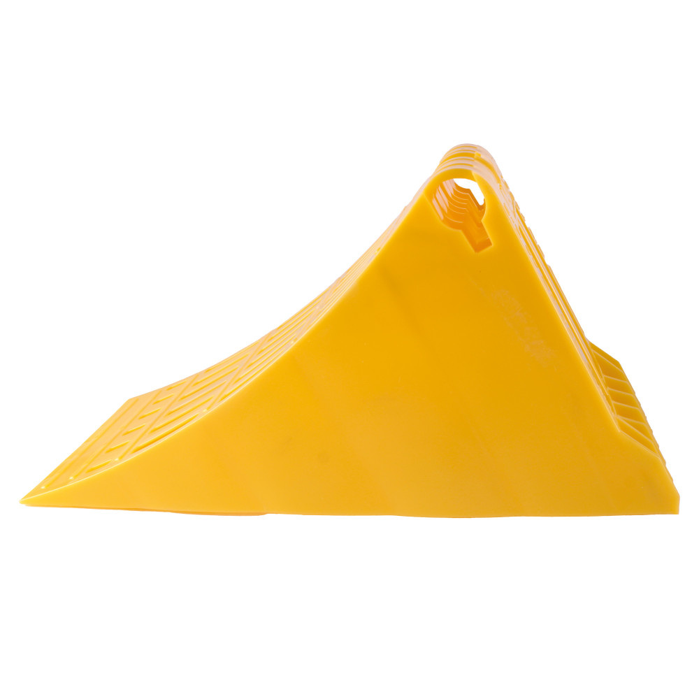 Kunststof uitvoering, voorkomt wegrollen op een schuine helling van je caravan of kampeerauto.