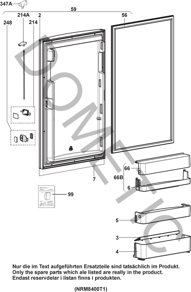 Dometic RMS8550 Knop Deurvergrendeling, nummer 214A in de technische tekening.