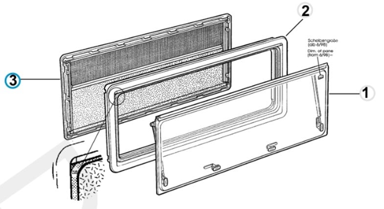 Compleet binnenkader met vliegenhor en verduistering t.b.v. Dometic raam S4 1100x700