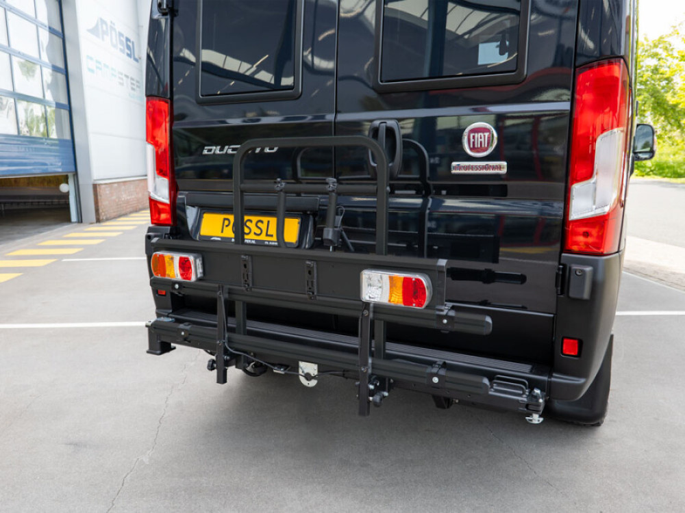 - Volledig draaibaar: dankzij het geïntegreerde draaisysteem kunnen beide achterdeuren volledig geopend worden zonder demontage van de fietsen