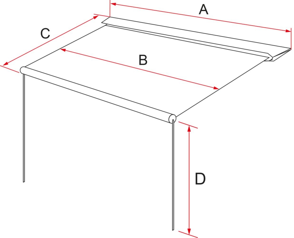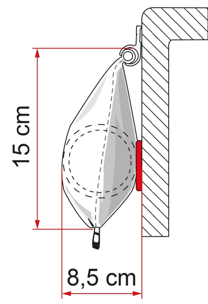 De luifel zit opgeborgen in een zak met krasvaste band en is leverbaar in twee kleuren.