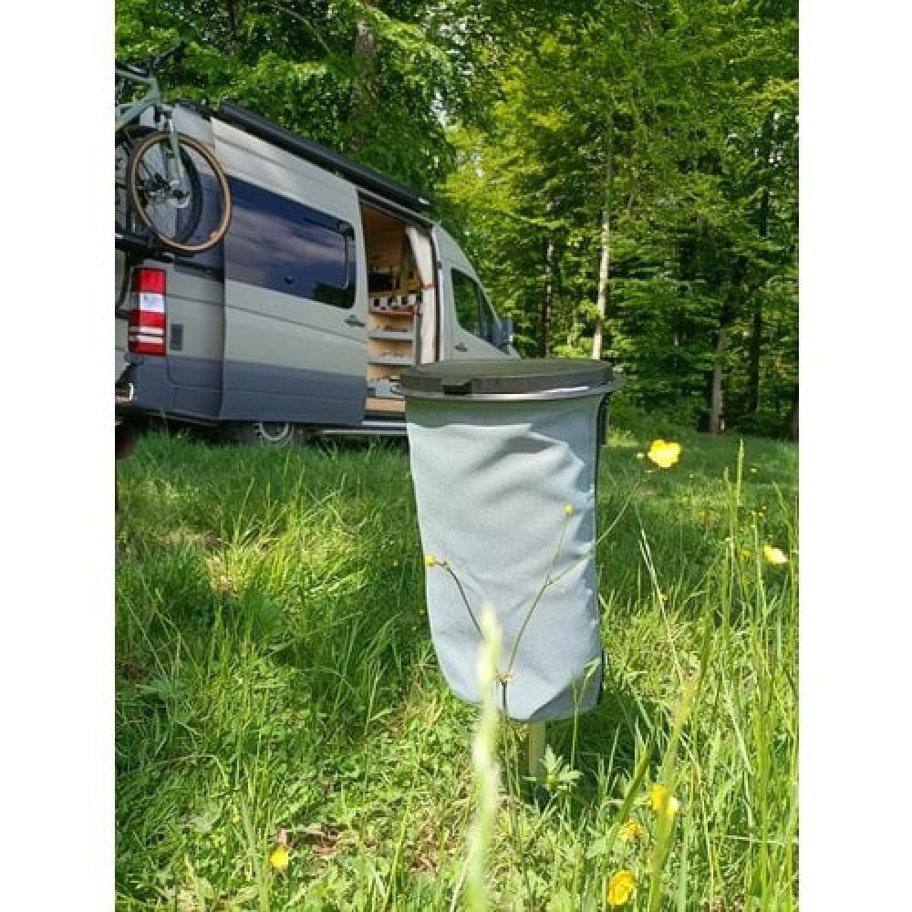 Flextrash Ocean Green maat L bevat een design top deksel, een stoffen coverbag en een biologisch afbreekbare trashbag.