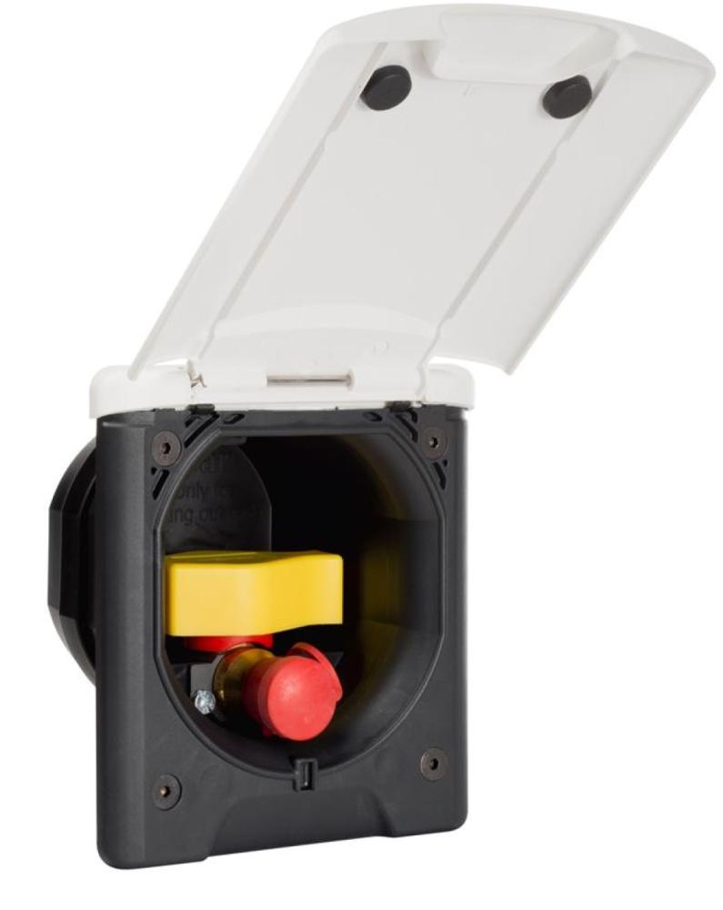 Een inbouwgascontactdoos in wit voor veilige gas-aansluitingen.