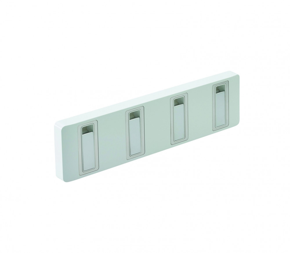 Kapstok met 4 uitklapbare haken. De witte grondplaat met chromen haken geeft een fraaie uitstraling.