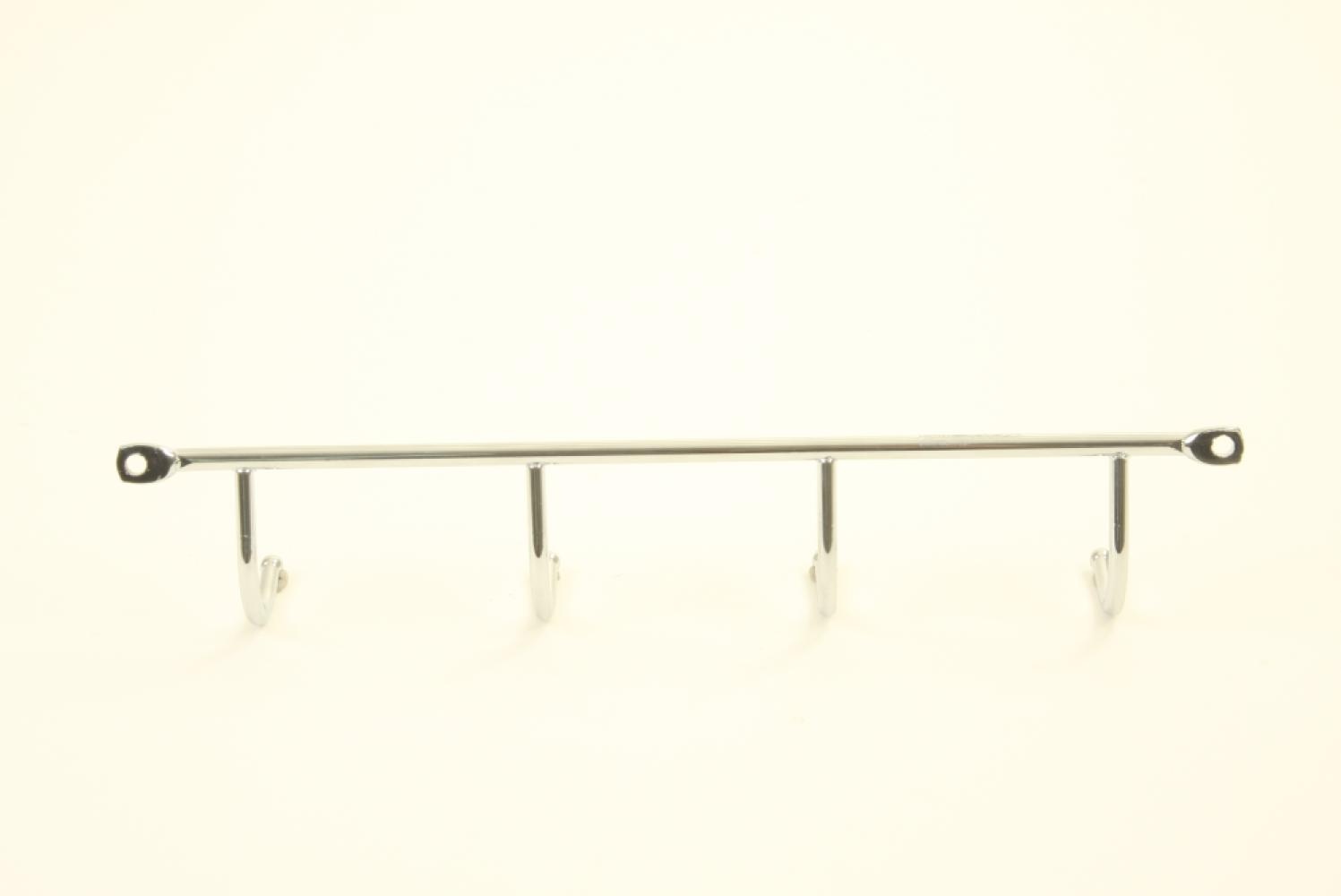 Deze verchroomde kapstok voorzien van 4 haken is ideaal om handdoeken netjes te laten drogen in de keuken of toiletruimte. Gegalvaniseerd.