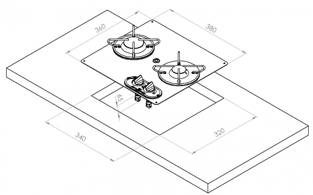 RVS platte kookplaat. Uitgerust met 2 branders.