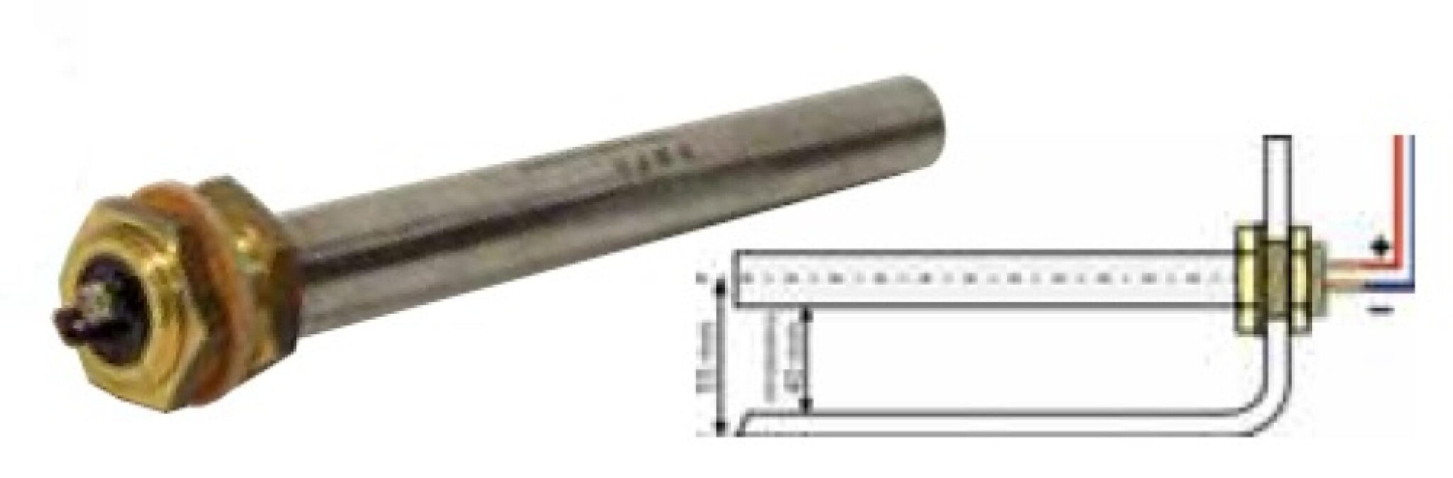 Vorstbeschermer. Ideaal voor de wintersport kampeerder. Voor inbouw in schoon- of afvalwatertanks. 12volt - 30watt. Messing uitvoering, met thermostaat. Schakelt in bij ca. 5graden en uit bij ca. 10graden. Afm. lengte 20cm.